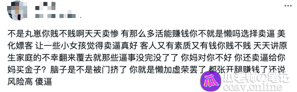 并且还爆料出一个相当令人三观炸裂的内幕消息,丸崽线下接客卖肉美化嫖客,诱惑一些无知的小女孩一起卖身,还经常卖可怜,对粉丝诉苦自己原生家庭的不幸,自己还要卖身给母亲买金链子